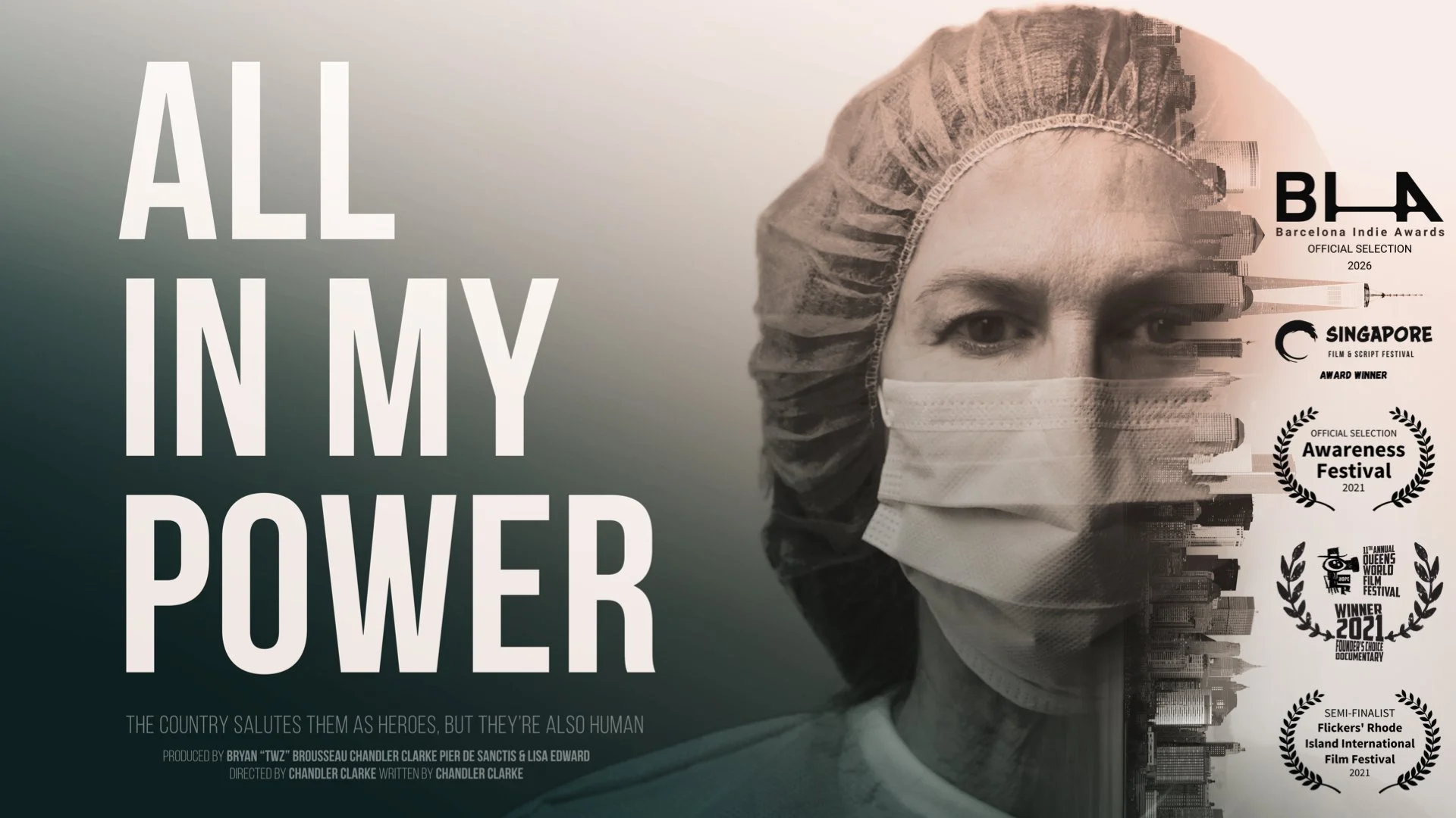 On March 1st, 2020, New York recorded its first COVID-19 case. Only weeks later, 12 healthcare professionals were asked to share their experiences fighting a new kind of war no one could have prepared them for. The country salutes them as heroes, but they're also human. Their personal stories remind us of what humanity is supposed to be, compassionate. Shot during the height of the pandemic in NY, All In My Power is a time capsule that captures the emotion and raw experiences of NY's Healthcare Professionals that can never be recreated. A set of diverse HCP's articulate the toll this pandemic has taken on them, and the amazing resilience they've harnessed to get through it. The film's first-hand accounts are a testament to the lengths our healthcare community has gone through to provide care to patients and their loved ones during the COVID-19 pandemic.
